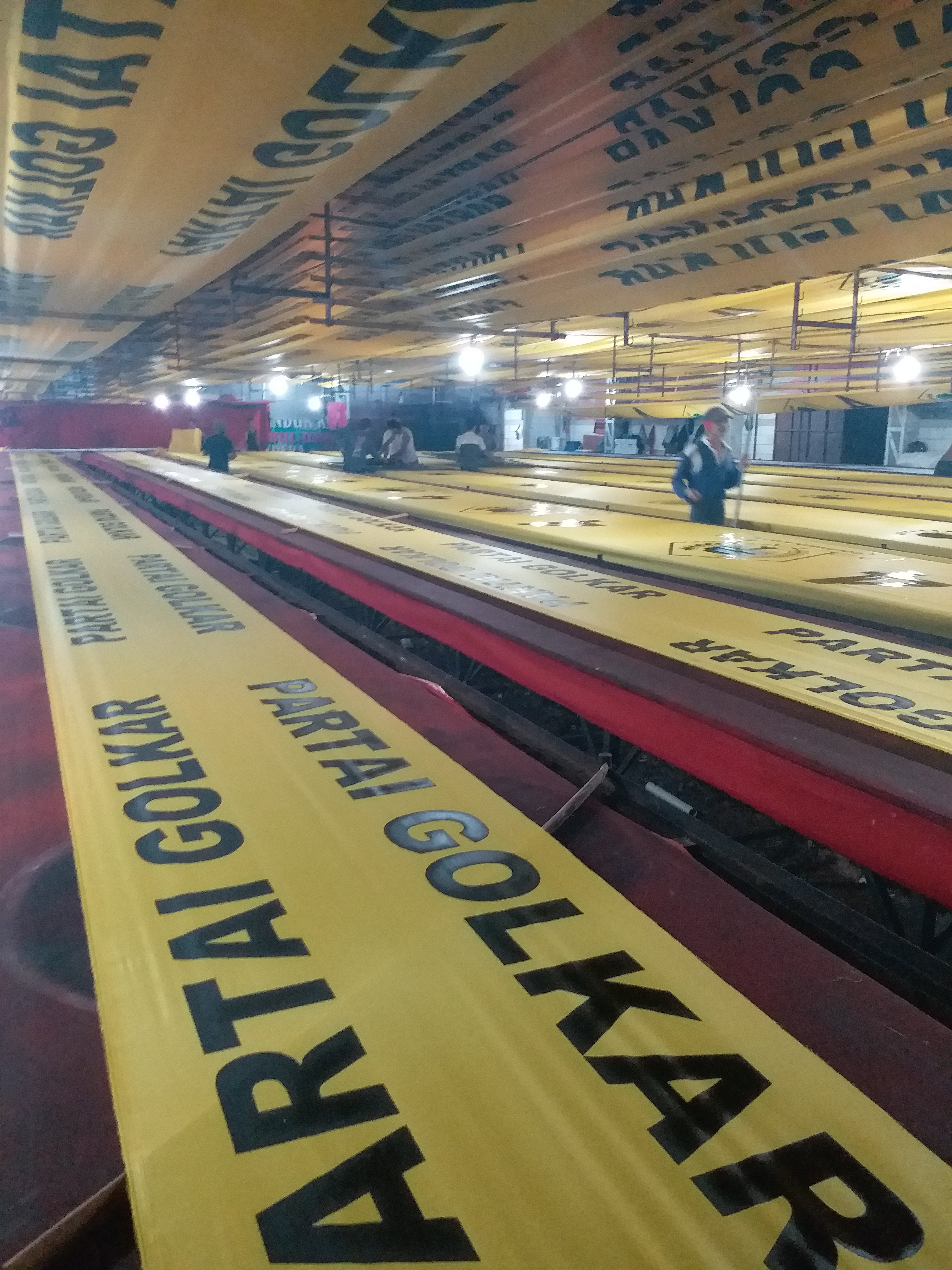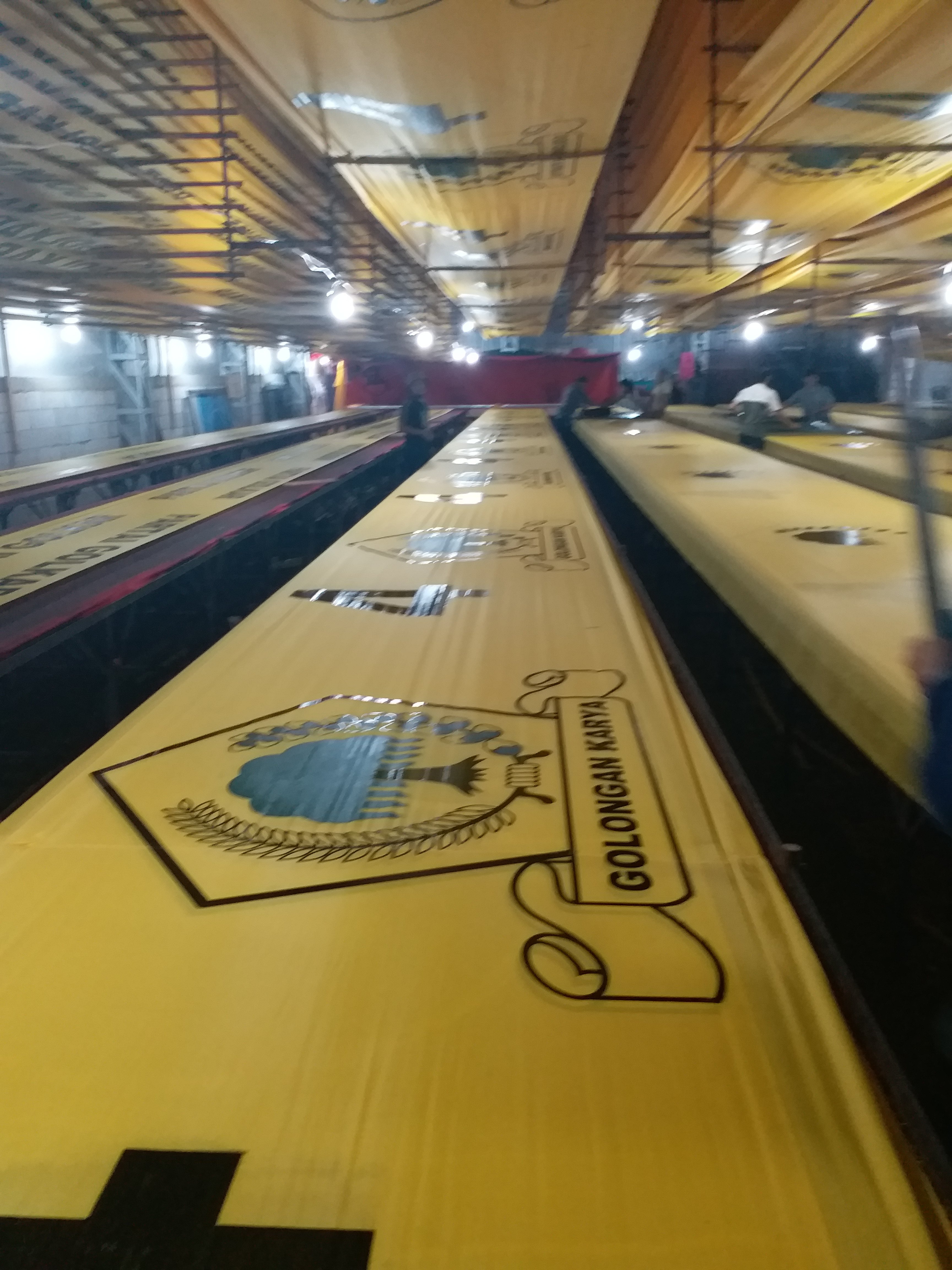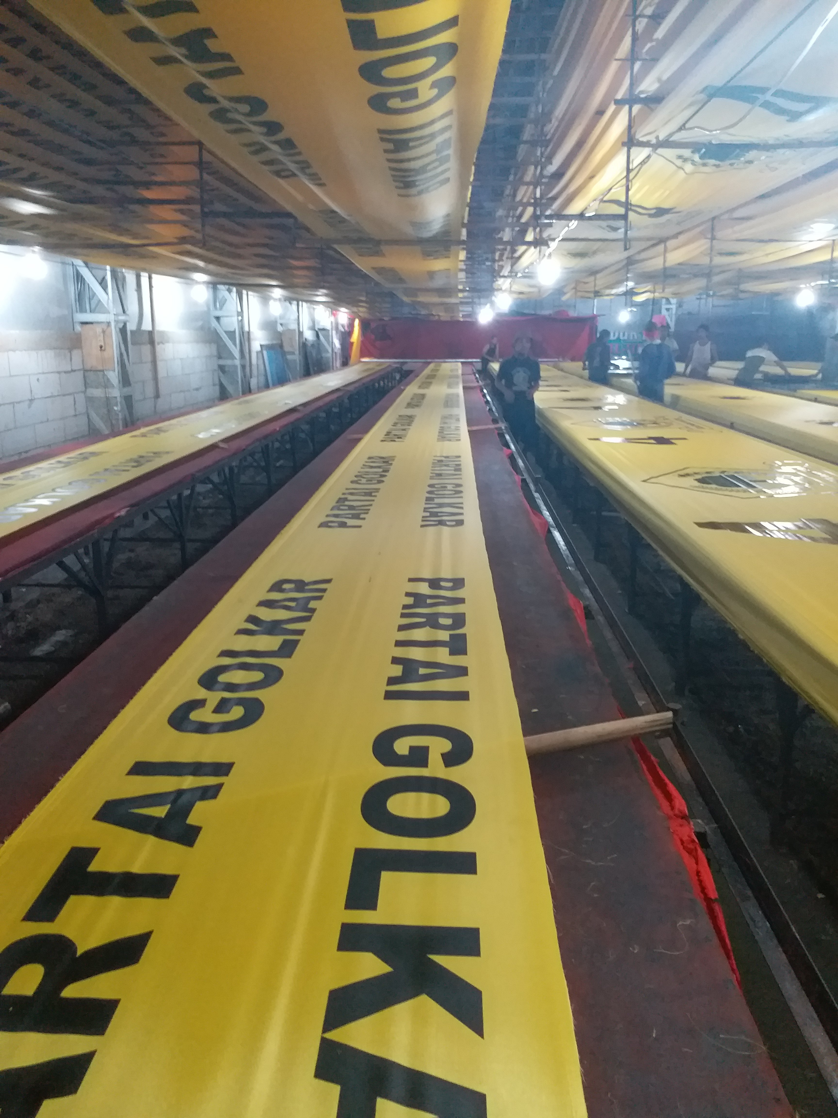 Kreasi spanduk merupakan workshop sablon spanduk, umbul umbul, bendera partai dan giant flag.